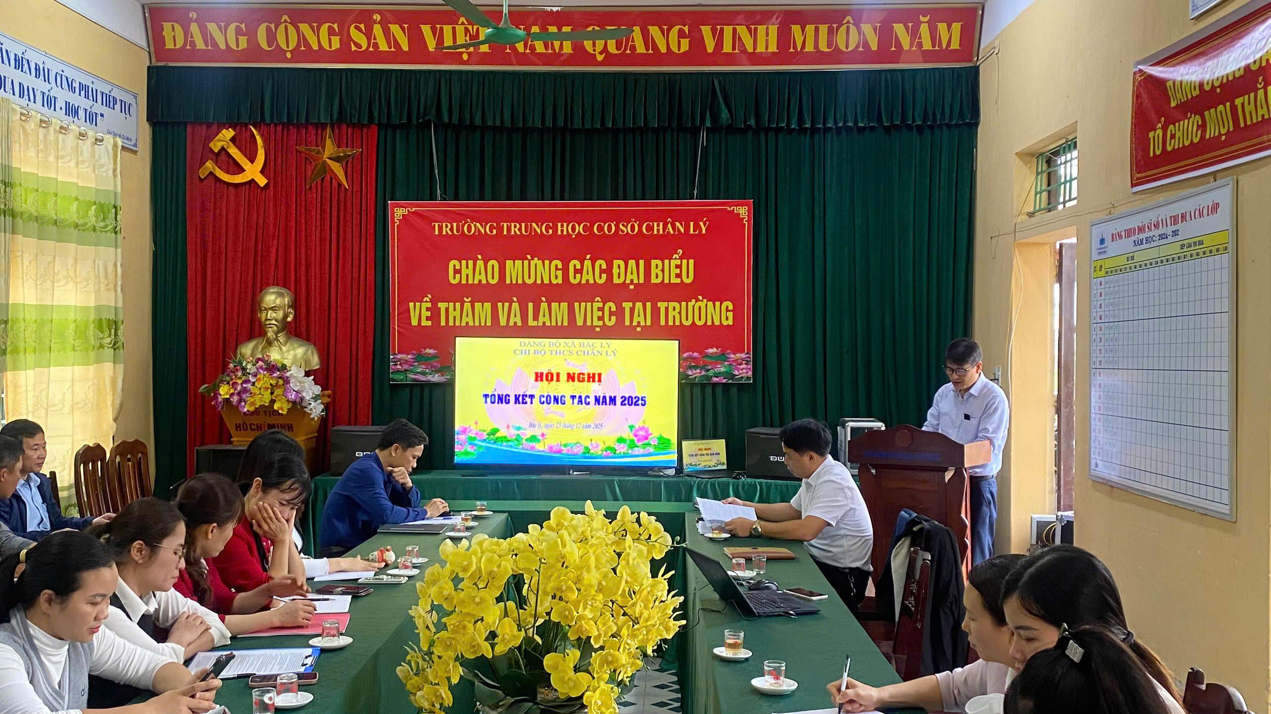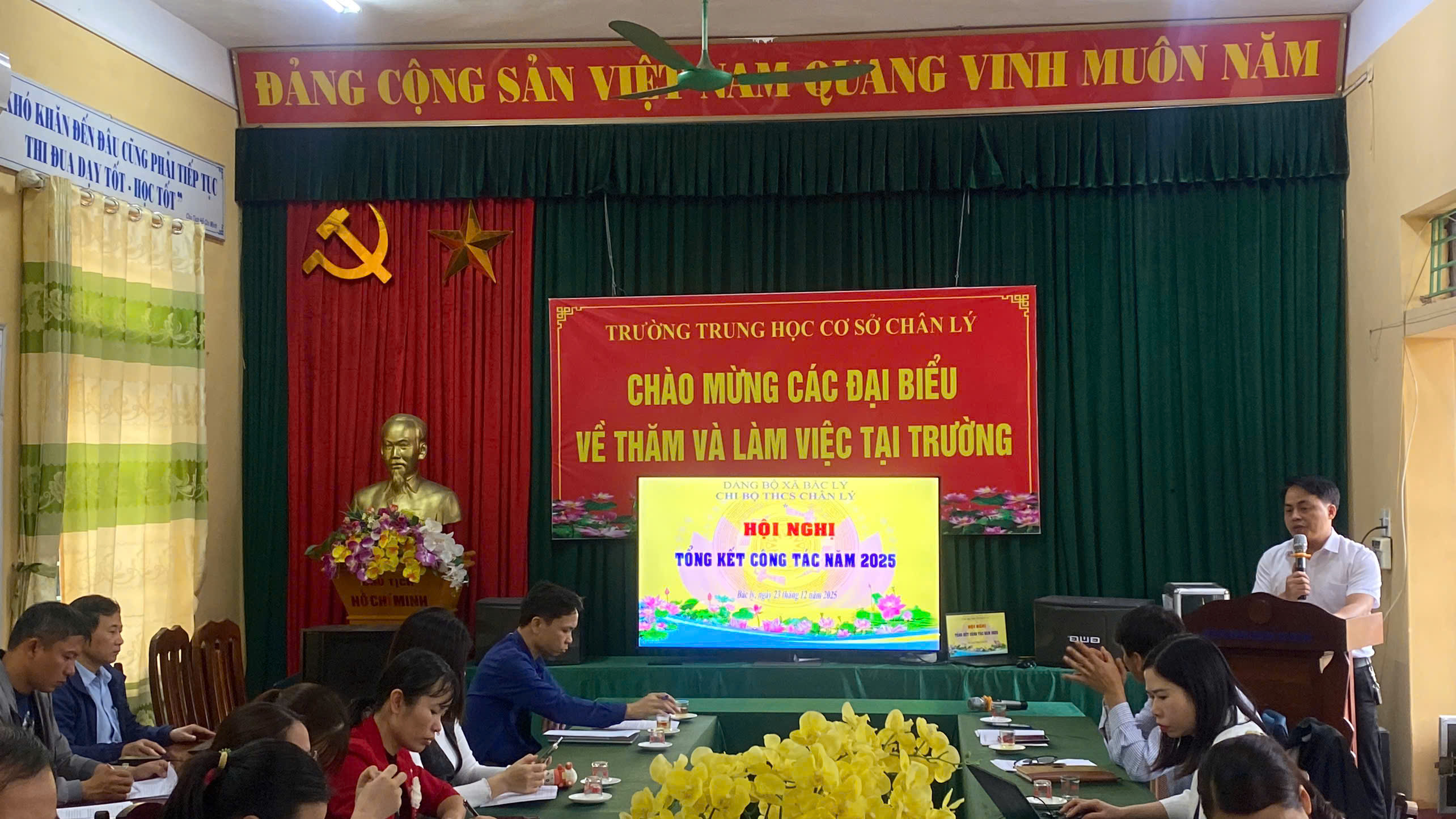 Thực hiện sự chỉ đạo của Đảng ủy xã Bắc Lý, tỉnh Ninh Bình tại Công văn số 176-CV/ĐU về việc tổ chức Hội nghị Tổng kết công tác năm 2025, ngày 23/12/2025, Chi bộ trường THCS Chân Lý tổ chức Hội nghị Tổng kết công tác năm 2025. Đồng chí Đỗ Văn Thắng – Ủy viên Ban Thường vụ Đảng ủy, Phó Chủ tịch HĐND xã Bắc Lý đã về dự, chủ trì và chỉ đạo Hội nghị. Đồng chí Đỗ Văn Thắng ghi nhận và đánh giá cao kết quả nhiệm vụ lãnh đạo, chỉ đạo của chi bộ trong năm 2025, đồng thời chỉ đạo chi bộ khắc phục những khó khăn, tồn tại hạn chế để hoàn thành xuất sắc nhiệm vụ năm 2026 đã đề ra.